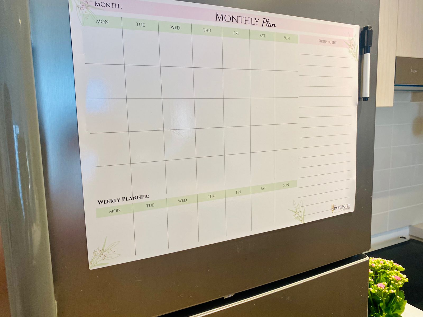 This is a Monthly & Weekly planner. Extremely useful to use month after month to organise your household. Family organisation, Fridge planner and most importantly reusable.